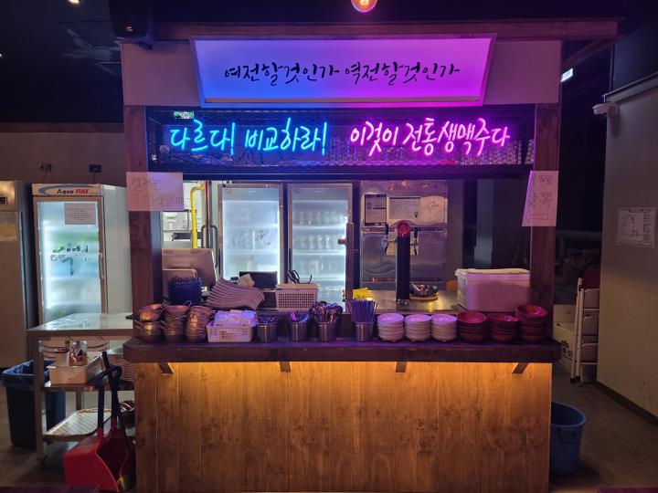 1.¸ÅÀå ±Ô¸ð¿Í ±¸Á¶ •LGµð½ºÇ÷¹ÀÌ ±â¼÷»ç º¹Áöµ¿ Aµ¿ 2Ãþ¿¡ À§Ä¡ÇÏ¿© Á¢±ÙÀÌ ¿ëÀÌÇÏ°í£¬ Ãþ Àüü°¡ º¹Áö¡¤F&B ºê·£µå ¸ÅÀåÀ¸·Î ±¸¼ºµÇ¾î ÀÖ½À´Ï´Ù. •¿ÀÇÂÇü ȦÀÌ Áß½ÉÀ» ÀÌ·ç¸ç£¬ 4ÀÎ Å×À̺í Áß½ÉÀÇ Á¼® ¹èÄ¡·Î ȸ½Ä¡¤Ä£¸ñ ¸ðÀÓ¿¡ ÀûÇÕÇÕ´Ï´Ù. •¾à 40~60¼® ±Ô¸ð·Î£¬ »ç³» ȸ½Ä ¼ö¿ä¸¦ ¼ÒÈÇÒ ¼ö ÀÖµµ·Ï ¿©À¯ ÀÖ´Â Á¼® °£°ÝÀ» À¯Áö. 2.ÁÖ¹æ ¹× ¼ºñ½º µ¿¼± •ÁÖ¹æÀº ¸ÅÀå Èĸ鿡 ¹èÄ¡µÇ¾î Á¶¸®¡¤¼ºù µ¿¼±ÀÌ Âª¾Æ È¿À²ÀûÀÔ´Ï´Ù. •¼ºù °ø°£°ú ÁÖ¹æÀÌ ¸íÈ®È÷ ºÐ¸®µÇ¾î À§»ý°ú È¿À²¼ºÀ» µ¿½Ã¿¡ È®º¸. 3.±âŸ ÆíÀǽü³ •»ç³» º¹Áöµ¿ °ø¿ë ÈÀå½Ç°ú ¿¬°áµÇ¾î ÀÖ¾î °í°´ ÀÌ¿ë Æí¸®. •¸ÅÀå ÀÔ±¸¿Í Ȧ »çÀÌ¿¡ °£´ÜÇÑ ´ë±â °ø°£ÀÌ ¸¶·ÃµÇ¾î ÀÖ¾î Åð±Ù ½Ã°£´ë ´ë±â Àοø ¼ö¿ë °¡´É. 🎨 ÀÎÅ׸®¾î 1.ºê·£µå ¾ÆÀ̵§Æ¼Æ¼ ¹Ý¿µ •¿ªÀüÇҸӴϸÆÁÖ Æ¯À¯ÀÇ ºóƼÁö °¨¼º°ú Æ÷±ÙÇÑ ºÐÀ§±â¸¦ »ì¸° ÀÎÅ׸®¾î. •º®¸é¿¡´Â ¿¾³¯½Ä °£ÆÇ£¬ ÇÒ¸Ó´Ï Ä³¸¯ÅÍ ÀÏ·¯½ºÆ®£¬ º¹°ídz ¼ÒǰÀ» Ȱ¿ëÇØ ¾Æ³¯·Î±× °¨¼º ±¸Çö. 2.Á¶¸í •µû¶æÇÑ ³ë¶õ»ö ÅæÀÇ Á¶¸íÀ» »ç¿ëÇØ Æí¾ÈÇÏ°í ¾Æ´ÁÇÑ ºÐÀ§±â ¿¬Ãâ. •Å×À̺í À§ °³º° Ææ´øÆ® Á¶¸íÀ¸·Î À½·á¡¤¾ÈÁÖ°¡ µ¸º¸À̵µ·Ï µðÀÚÀÎ. 3.Á¼® ¹× ¸¶°¨Àç •¿ø¸ñ Å×À̺í°ú ÀÇÀÚ£¬ ÀϺΠ°¡Á× ½ÃÆ®·Î ³»±¸¼º°ú Æí¾ÈÇÔ È®º¸. •¹Ù´ÚÀº ¾îµÎ¿î ¿ìµåÅæ£¬ º®¸éÀº ºê¸¯¡¤¿ìµå ÆÐ³ÎÀ» È¥ÇÕÇØ ·¹Æ®·Î ¹«µå °È. 4.Æ÷ÅäÁ¸ ¿ä¼Ò •ºê·£µå ·Î°í ³×¿Â»çÀΰú ij¸¯ÅÍ ÀÏ·¯½ºÆ®°¡ ÀÖ´Â Æ÷ÅäÁ¸ ±¸¼º. •MZ¼¼´ë ÀÓÁ÷¿øµéÀÌ »çÁø Âï°í °øÀ¯Çϱâ ÁÁÀº ÀνºÅ¸±×·¡¸Óºí Æ÷ÀÎÆ® Á¦°ø. ¡á ÀÔÁö¿Í Ư¡¼³¸í