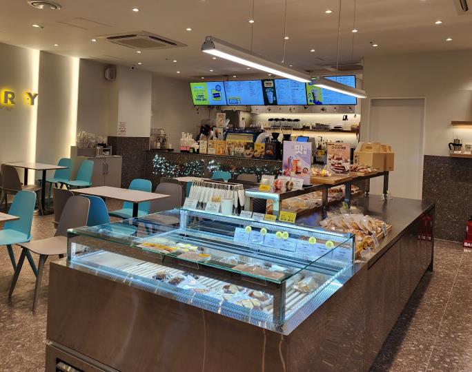 1) Àüü ·¹À̾ƿô & µ¿¼± • ¿¬¼¼´ë ±¹Á¦ÇÐ»ç ³»ºÎ¿¡ À§Ä¡ÇØ Çлý µ¿¼±(±â¼÷»ç ¡æ ¸ÅÀå)°ú ¹Ù·Î ¿¬°áµÇ´Â ±¸Á¶¶ó ÃâÀÔ±¸¿¡¼ Ä«¿îÅÍ¡¤Áø¿´ë±îÁöÀÇ µ¿¼±ÀÌ Âª°í È¿À²ÀûÀÔ´Ï´Ù. • ÁÖ¹® ¡æ ÇȾ÷(Å×ÀÌÅ©¾Æ¿ô) µ¿¼±°ú º£ÀÌÄ¿¸® Áø¿ ±¸¿ªÀÌ ºÐ¸®µÇ¾î ÀÖ¾î, ºÕºô ¶§µµ È帧ÀÌ ºñ±³Àû ¿øÈ°Çϵµ·Ï ¼³°èµÇ¾î ÀÖ½À´Ï´Ù. 2) º£ÀÌÄ¿¸® Áø¿¡¤Ä«¿îÅÍ • ¿ÀÇ º£ÀÌÄ¿¸®(Áø¿Çü) ÄܼÁÆ®·Î, ¿©·¯ Á¾·ùÀÇ »§ÀÌ Æ®·¹ÀÌ¿¡ Áø¿µÇ¾î ¼ÒºñÀÚ°¡ Á÷Á¢ º¸°í °í¸¦ ¼ö ÀÖ°Ô ±¸¼ºµÇ¾î ÀÖ½À´Ï´Ù. »§ Áø¿´ë°¡ ¸ÅÀå Àü¸éºÎ¿¡ ³Ð°Ô ÀÚ¸®ÇØ ¡®»§ °¡½Ã¼º¡¯ÀÌ ¸Å¿ì ¿ì¼öÇÕ´Ï´Ù. • Ä«¿îÅÍ´Â À½·á Á¦Á¶ °ø°£°ú ºÐ¸®µÈ ÆíÀ̸ç, ÇÁ·Î¸ð¼Ç(¿ÀÇ À̺¥Æ® ¸Ó±× µî) Ç¥½Ã°¡ ´«¿¡ ¶ç´Â ÀåÁ¡ÀÌ ÀÖ½À´Ï´Ù. 3) Á¼®¡¤ÈÞ°Ô °ø°£ • ¸ÅÀåÀº ¸Å¿ì ³ÐÀº ÆíÀ̸ç, ¸ÅÀå ±Ùó ¾ß¿Ü º¥Ä¡ ¹× ¾ÉÀ» ¼ö ÀÖ´Â ÈÞ°Ô °ø°£ÀÌ Àß µÇ¾î ÀÖÀ¸¸ç, ³»ºÎ´Â Æí¾ÈÇÑ ºÐÀ§±âÀÇ Á¼®À» ¹èÄ¡ÇØ ü·ùÇü À̿뵵 °¡´ÉÇϽʴϴÙ. 4) Àç·á¡¤¸¶°¨¡¤»ö°¨ • ¸ÅÀå ³»ºÎ´Â ±ò²ûÇÏ°í ¹àÀº ÅæÀ¸·Î Á¤¸®µÇ¾î ÀÖ½À´Ï´Ù. ½ºÅ×Àθ®½º¡¤À¯¸® Áø¿´ë¿Í ¹àÀº Á¶¸í Á¶ÇÕÀ¸·Î »§ »ö°¨ÀÌ µ¸º¸À̵µ·Ï ¼³°èµÇ¾î ÀÖ½À´Ï´Ù. 5) Á¶¸í¡¤»çÀΡ¤ºê·£µù • Á¶¸íÀº Áø¿¡¤»óǰ °Á¶ÇüÀ¸·Î ¼³°èµÇ¾î ÀÖ¾î, Áø¿´ë À§ »§ÀÇ Áú°¨°ú Ä÷¯°¡ Àß º¸ÀÌ°Ô ÇÔ. ¸ÅÀå ³»ºÎ¿¡´Â ¿¬¼¼´ë ÇÑÁ¤ ÄܼÁÆ® ¸Þ´º¸¦ ¾Ë¸®´Â POP¡¤»çÀÎÀÌ ¹èÄ¡µÇ¾î ÀÖ¾î ¡®Ä·ÆÛ½º Àü¿ë¡¯ À̹ÌÁö¸¦ °Á¶ÇÕ´Ï´Ù. 6) Á¦»§¡¤ÁÖ¹æ(¹é¿ÀºêÇϿ콺) °ü·Ã • ¸ÅÀå¿¡¼ Á÷Á¢ »§À» ±Á´Â(º£ÀÌÅ· °ü·Ã ÀÛ¾÷ÀÌ º¸ÀÌ´Â) ÄܼÁÆ®·Î ¿î¿µ Áß ÀÌ½Ã¸ç ¡®»§ ¿¬±¸¼Ò¡¯ ¶ó´Â À̸§°ú ¸Â°Ô ¸ÅÀå ³» Á¦»§ °øÁ¤ÀÌ Àü½ÃµÇ°Å³ª °¡½ÃÈµÈ ´«À¸·Îµµ Áñ±â½Ç¼ö ÀÖ´Â ÄܼÁÆ®¸¦ ÀÚ¶ûÇÏ´Â ¸ÅÀå ÀÔ´Ï´Ù. 7) ÆíÀÇ¡¤¼ºñ½º ¼³ºñ • Å×ÀÌÅ©¾Æ¿ô Áß½ÉÀÇ ºü¸¥ ȸÀüÀÌ °¡´ÉÇϵµ·Ï ÇȾ÷´ë¡¤Æ÷Àå °ø°£ÀÌ È®º¸µÇ¾î ÀÖ°í, Çлý °í°´ÀÌ ¸¹¾Æ °áÁ¦ ´Ü¸»¡¤QR°áÁ¦ µî °£Æí°áÁ¦ ¼ö´ÜÀ» Àß °®Ãá ¸ÅÀå ÀÔ´Ï´Ù. ¡á ÀÔÁö¿Í Ư¡¼³¸í