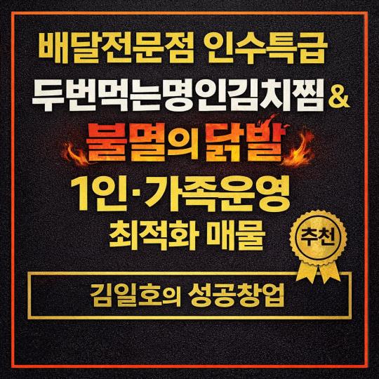 µÎ¹ø¸Ô´Â¸íÀαèÄ¡Âò & ºÒ¸êÀÇ ´ß¹ß ¹è´ÞÀü¹®Á¡ ÀμöƯ±Þ£ü1ÀΡ¤°¡Á·¿î¿µ ÃÖÀûÈ ¸Å¹° Q1. À̹ø Àμöâ¾÷ ¸Å¹°, ¾î¶² Á¡ÀÌ °¡Àå ´«¿¡ ¶ç³ª¿ä? A. ÀÌ ¸Å¹°ÀÇ ÇÙ½ÉÀº 2°³ÀÇ °ËÁõµÈ ¹è´Þ ºê·£µå¸¦ µ¿½Ã¿¡ ¿î¿µÇϸ鼵µ 1ÀÎ ¿î¿µ ±âÁØÀ¸·Î ¿ù ¼øÀÍ 600¸¸ ¿ø´ë¸¦ ¾ÈÁ¤ÀûÀ¸·Î ¸¸µé ¼ö ÀÖ´Â ±¸Á¶¶ó´Â Á¡ÀÔ´Ï´Ù. ƯÈ÷ ¹è´ÞÀü¹®Á¡ Áß¿¡¼µµ Á¶¸® ³À̵µ ³·°í ±Ù¹« ȯ°æÀÌ ÁÁÀ¸¸ç Ç÷§Æû ÀÚ»ê±îÁö È®º¸µÈ ½ÇÀüÇü Àμö ¸Å¹°ÀÔ´Ï´Ù. Q2. ¿î¿µ ÁßÀÎ ºê·£µå´Â ¹«¾ùÀΰ¡¿ä? A. ÇöÀç ¸ÅÀåÀº **µÎ¹ø¸Ô´Â¸íÀαèÄ¡Âò**°ú ºÒ¸êÀÇ ´ß¹ß 👉 2°³ ºê·£µå¸¦ µ¿½Ã¿¡ ¿î¿µ ÁßÀÔ´Ï´Ù. ±èÄ¡Âò°ú ´ß¹ßÀº ¹è´Þ ½ÃÀå¿¡¼ ÀçÁÖ¹®À²ÀÌ ³ôÀº ¸Þ´º Á¶ÇÕÀ¸·Î, ¸ÅÃâ º¯µ¿¼ºÀÌ Å©Áö ¾ÊÀº °ÍÀÌ ÀåÁ¡ÀÔ´Ï´Ù. Q3. ¸ÅÀå À§Ä¡¿Í ±âº» Á¶°ÇÀº ¾î¶»°Ô µÇ³ª¿ä? A. ÁÖ¼Ò : °æ±âµµ ³²¾çÁֽà º°³»3·Î 98, 1Ãþ (Áö¹ø : ³²¾çÁֽà º°³»µ¿ 1014-1) Ãþ¼ö / ±¸Á¶ : 1Ãþ + ³»ºÎ º¹Ãþ ±¸Á¶(ÈÞ°Ô °ø°£) Àü¿ë¸éÀû : 49.97§³ ¿µ¾÷½Ã°£ : 16:00 ~ 01:00 ÈÞ¹« : ¿ù 2ȸ ÃÖÃÊ °³¾÷ÀÏ : 2024³â 12¿ù º°³» ½Ã³» Áß½ÉÁö ´ë·Îº¯¿¡ À§Ä¡ÇØ ¶óÀÌ´õ Á¢±ÙÀÌ ¸Å¿ì ½±°í, Æ÷Àå ¼ö¿äµµ ²ÙÁØÈ÷ ¹ß»ýÇÏ´Â ÀÔÁöÀÔ´Ï´Ù. Q4. ÀÓ´ë Á¶°Ç°ú ±Ç¸®±ÝÀº ¾î´À Á¤µµÀΰ¡¿ä? A. ÀӴ뺸Áõ±Ý : 2,000¸¸ ¿ø ¿ù¼¼ : 110¸¸ ¿ø ±Ç¸®±Ý : 6,000¸¸ ¿ø (¸ÅµµÀÎ Èñ¸Á°¡, Çù»ó °¡´É) 👉 ¼ÒÀÚº»À¸·Î Á¢±Ù °¡´ÉÇÑ Àμö Á¶°ÇÀ̸ç, ¹è´ÞÀü¹®Á¡ ±âÁØÀ¸·Î ºÎ´ãÀÌ Å©Áö ¾ÊÀº ±¸Á¶ÀÔ´Ï´Ù. Q5. ½ÇÁ¦ ¸ÅÃâ°ú ¼öÀÍ ±¸Á¶´Â ¾î¶²°¡¿ä? A. ¿ù ¸ÅÃâ : ¾à 3,000¸¸ ¿ø ¸¶ÁøÀ² : ¾à 65% ¿ù °íÁ¤ºñ´Â ÀΰǺñ : ¾à 100¸¸ ¿ø (1ÀÎ ¿î¿µ ±âÁØ) °ø°úºñ : ¾à 40¸¸ ¿ø ±âŸ ºñ¿ë : ¾à 1,080¸¸ ¿ø À̸¦ Á¦¿ÜÇϸé ➡️ ¿ù ¼ø¼öÀÍ ¾à 620¸¸ ¿ø ➡️ ¼ÕÀͺбâÁ¡ ¾à 2,046¸¸ ¿ø ➡️ ±Ç¸®±Ý ȸ¼ö ¿¹»ó ±â°£ ¾à 9°³¿ù Q6. Á¤¸» 1ÀÎ ¿î¿µÀÌ °¡´ÉÇÑ ±¸Á¶Àΰ¡¿ä? A. ³×, ÃæºÐÈ÷ °¡´ÉÇÕ´Ï´Ù. ȱ¸ »ç¿ë ¾øÀ½ Á¶¸® °øÁ¤ ´Ü¼ø ÇÇũŸÀÓ¿¡µµ µ¿¼± È¿À²Àû ½ÇÁ¦ ¼ÕÀÍ ±¸Á¶ ÀÚü°¡ 1ÀÎ ¿î¿µ ±âÁØÀ¸·Î ¼³°èµÈ ¸ÅÀåÀ̸ç, °¡Á· ¿î¿µ ½Ã ÀΰǺñ Àý°¨ È¿°ú´Â ´õ Ä¿Áý´Ï´Ù. Q7. ¹è´Þ Ç÷§Æû °æÀï·ÂÀº ¾î¶²°¡¿ä? A. ¹è´ÞÀǹÎÁ· Âò ¼ö 1,200°³ ÀÌ»ó ±âÁ¸ °í°´ ¸®ºä ¹× ÆòÁ¡ È®º¸ Ç÷§Æû ¸®ºä¡¤°èÁ¤ ½Â°è ÇùÀÇ °¡´É 👉 ½Å±Ô â¾÷ó·³ ¸®ºä 0ºÎÅÍ ½ÃÀÛÇÏÁö ¾Ê¾Æµµ µÇ´Â °ÍÀÌ Àμöâ¾÷ÀÇ °¡Àå Å« ÀåÁ¡ÀÔ´Ï´Ù. Q8. »ó±Ç°ú ¹è´Þ ¼ö¿ä´Â ¾ÈÁ¤ÀûÀΰ¡¿ä? A. ÁÖ°Å Àα¸ : º°³» ½Åµµ½Ã ¾ÆÆÄÆ® ¹ÐÁý Á÷Àå Àα¸ : Àα٠»ó¾÷¡¤¾÷¹«½Ã¼³ À¯µ¿ Àα¸ : Àú³á¡¤¾ß°£ ¹è´Þ ¼ö¿ä ÁýÁß ¹è´Þ°ú Æ÷ÀåÀÌ µ¿½Ã¿¡ ¹ß»ýÇÏ´Â ±¸Á¶·Î ¸ÅÃâ º¯µ¿¼ºÀÌ Å©Áö ¾Ê½À´Ï´Ù. Q9. °³ÀÎ ¸ÅÀå ´ëºñ ÇÁ·£Â÷ÀÌÁîÀÇ ÀåÁ¡Àº ¹«¾ùÀΰ¡¿ä? A. ÇÁ·£Â÷ÀÌÁîÀÇ ÀåÁ¡Àº ¸íÈ®ÇÕ´Ï´Ù. º»»ç ·¹½ÃÇÇ ¹× ¿î¿µ ¸Å´º¾ó Á¦°ø ¹°·ù °ø±Þ ¾ÈÁ¤ ¿øÀç·á ǰÁú »óÇâ ÆòÁØÈ ¹°·ùºñ¿ë 35% À̳» °ü¸® °¡´É Ãʺ¸ â¾÷ÀÚ¿¡°Ô ƯÈ÷ À¯¸®ÇÑ ±¸Á¶ÀÔ´Ï´Ù. Q10. ½Å±Ôâ¾÷°ú ºñ±³ÇÏ¸é ¾î¶² Â÷À̰¡ ÀÖ³ª¿ä? A. ½Å±Ô â¾÷ : ¸®ºä¡¤Âò ¼ö 0 ¡æ ±¤°íºñ¡¤½Ã°£ ºÎ´ã Å Àμö â¾÷ : Ç÷§Æû µ¥ÀÌÅÍ¡¤¸ÅÃâ Áï½Ã ½Â°è °¡´É 👉 ½Ã°£°ú ºñ¿ë, µÎ °¡Áö¸¦ µ¿½Ã¿¡ ÁÙÀÏ ¼ö ÀÖ½À´Ï´Ù. Q11. ±Ç¸®±ÝÀº ÇÕ¸®ÀûÀÎ ¼öÁØÀΰ¡¿ä? A. ¿ù ¼øÀÍ ¾à 600¸¸ ¿ø ±âÁØ, ȸ¼ö ±â°£ ¾à 9°³¿ùÀÌ¸é ¹è´ÞÀü¹®Á¡ Àμö ±âÁØÀ¸·Î ÃæºÐÈ÷ ÇÕ¸®ÀûÀÎ ¼öÁØÀÔ´Ï´Ù. ÇâÈÄ Àç¸Å°¢(Exit) °üÁ¡¿¡¼µµ ºÎ´ãÀÌ Å©Áö ¾ÊÀº ±¸Á¶ÀÔ´Ï´Ù. Q12. ¸Åµµ »çÀ¯´Â ¹«¾ùÀΰ¡¿ä? A. ÁÖ°ÅÁö ÀÌÀüÀ¸·Î ÀÎÇÑ ¸ÅµµÀÔ´Ï´Ù. ¿µ¾÷ ºÎÁøÀ̳ª ¼öÀÍ ¹®Á¦¿Í´Â ¹«°üÇÕ´Ï´Ù. Q13. ±è1È£ ÀÌ»çÀÇ ÇöÀå ÇѸ¶µð A. ¡°ÀÌ ¸Å¹°Àº ¹è´ÞÀü¹®Á¡ Áß¿¡¼µµ ³ëµ¿ °µµ°¡ ³·°í, ¼öÀÍ ±¸Á¶°¡ ¸íÈ®ÇÑ Àμö ¸Å¹°ÀÔ´Ï´Ù. ƯÈ÷ 1ÀÎ ¶Ç´Â °¡Á· ¿î¿µÀ» °í·ÁÇϽô ºÐ²² Çö½ÇÀûÀÎ ¼±ÅÃÁö°¡ µÉ ¼ö ÀÖ½À´Ï´Ù.¡± »ó´ã ¾È³» ½Ç¸ÅÃâ ÀÚ·á Ç÷§Æû ¸®ºä ½Â°è ¹üÀ§ ±Ç¸®±Ý ÇùÀÇ Á¶°ÇÀº Á¡Æ÷¶óÀÎ Àü¹®°¡ ±è1È£ À̻縦 ÅëÇØ 1:1·Î »ó¼¼ ¾È³»µå¸³´Ï´Ù. 👔 Á¡Æ÷¶óÀÎ & ±è1È£ ÀÌ»ç ¼Ò°³ ✔ Á¡Æ÷¶óÀÎ – ÇÁ·£Â÷ÀÌÁî Àü¹® »ó¾÷¿ë ºÎµ¿»ê Áß°³ Ç÷§Æû Àü±¹ ³×Æ®¿öÅ© / 31³â ¾÷·Â ¿ù°£ ¹æ¹®ÀÚ 200¸¸ ¸í µ¹ÆÄ ÇãÀ§ ¸Å¹° Á¦·Î ½Ã½ºÅÛ ¿î¿µ ÇÁ·ÓÅ×Å© ±â¹Ý ¸Å¹° ºÐ¼® Á¤·ü ¼ö¼ö·á + 4¾ï °øÁ¦ ½Ã½ºÅÛ 👔 ±è1È£ ÀÌ»ç – ÇÁ·£Â÷ÀÌÁî Àμö Àü¹®°¡ ÇÁ·£Â÷ÀÌÁî â¾÷¡¤¾çµµ Àü¹® ÄÁ¼³ÅÏÆ® ±Ç¸®±Ý Çù»ó & ¼öÀÍ ±¸Á¶ ºÐ¼® Àü¹®°¡ ÃÖ±Ù °è¾à ½ÇÀû(°³Àκ귣µå Á¦¿