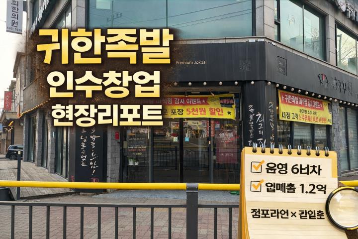À̹ø¿¡ ¼Ò°³ÇÏ´Â ¸Å¹°Àº ±ÍÇÑÁ·¹ß ³²¾çÁÖ ¸¶¼®Á¡ Àμöâ¾÷ ¸Å¹°ÀÔ´Ï´Ù. 2020³â 1¿ù ½Å±Ô ¿ÀÇ ÈÄ ÇöÀç±îÁö ¿î¿µ 6³âÂ÷¿¡ Á¢¾îµç ¸ÅÀåÀ¸·Î, ¿ù Æò±Õ¸ÅÃâ ¾à 1¾ï 2õ¸¸ ¿øÀ» ²ÙÁØÈ÷ À¯ÁöÇϰí ÀÖ´Â °ËÁõµÈ Á·¹ß Àü¹®Á¡ÀÔ´Ï´Ù. ÇöÀç´Â ¿ÀÅä¿î¿µ ÁßÀÎ ¸ÅÀåÀ¸·Î Àμö ÈÄ Áï½Ã ¼öÀÍÀÌ ¹ß»ýÇÏ´Â ±¸Á¶¶ó´Â Á¡ÀÌ °¡Àå Å« ÀåÁ¡ÀÔ´Ï´Ù. ¶ÇÇÑ ÀÌ ¸ÅÀåÀº ÇØ´ç Áö¿ª ³» ±ÍÇÑÁ·¹ß ½Å±Ô ¿ÀÇÂÀÌ ºÒ°¡´ÉÇÑ »ó±Ç¿¡ À§Ä¡ÇØ ÀÖ¾î ½Å±Ô Ã¢¾÷ÀÌ ¾Æ´Ñ Àμö¸¦ ÅëÇØ¼¸¸ ÁøÀÔ °¡´ÉÇÑ Èñ¼Ò ¸Å¹°ÀÔ´Ï´Ù. ¢Ã±ÍÇÑÁ·¹ß ºê·£µå °æÀï·ÂÀº? ±ÍÇÑÁ·¹ßÀº Á·¹ß¡¤º¸½Ó ¾÷Á¾ Áß¿¡¼µµ ¹è´Þ, Æ÷Àå, Ȧ ¸ÅÃâÀ» µ¿½Ã¿¡ ¾ÈÁ¤ÀûÀ¸·Î °¡Á®°¡´Â ºê·£µåÀÔ´Ï´Ù. Á·¹ß ´ÜÀÏ ¸Þ´º¿¡ ÀÇÁ¸ÇÏÁö ¾Ê°í º¸½Ó, ¹Ý¹Ý ¸Þ´º, »çÀÌµå ±¸¼º±îÁö °®Ãá ±¸Á¶·Î °´´Ü°¡ ¹æ¾î¿Í À籸¸ÅÀ²ÀÌ ³ôÀº °ÍÀÌ Æ¯Â¡ÀÔ´Ï´Ù. ƯÈ÷ ¹è´Þ Ç÷§Æû¿¡ ÃÖÀûÈµÈ ¸Þ´º ±¸¼º°ú ¾ß°£¡¤½É¾ß ¸ÅÃâÀÌ °ÇÑ Á¡Àº ±ÍÇÑÁ·¹ß ºê·£µåÀÇ ÇÙ½É °æÀï·ÂÀÔ´Ï´Ù. ¢Ã´ëÇ¥ ¸Þ´º ±¸¼º ±ÍÇÑÁ·¹ßÀÇ ÁÖ¿ä ÆÇ¸Å ¸Þ´º´Â ´ÙÀ½°ú °°½À´Ï´Ù. ¾Õ´Ù¸®¡¤µÞ´Ù¸® Á·¹ß ¸¶´ÃÁ·¹ß, ºÒÁ·¹ß º¸½Ó ¹× ¹Ý¹Ý ¸Þ´º ¸·±¹¼ö, Àï¹Ý±¹¼ö µî »çÀÌµå ¸Þ´º ¼¼Æ® ¸Þ´º ±¸¼º Á¶¸® ³À̵µ°¡ ³ôÁö ¾Ê¾Æ °¡Á· ¿î¿µÀ̳ª Ãʺ¸ â¾÷ÀÚµµ ºñ±³Àû ºü¸£°Ô ÀûÀÀÇÒ ¼ö ÀÖ´Â ±¸Á¶ÀÔ´Ï´Ù. ¢Ã¸ÅÀå ±âº» Á¤º¸ ½Ç¸Å¹° È®ÀÎÀÏ : 2026³â 1¿ù 23ÀÏ ÁÖ¼Ò : °æ±âµµ ³²¾çÁֽà ȵµÀ¾ ¸Ëµ¹·Î 136 Ãþ¼ö / ¸éÀû : 1Ãþ / 211.26§³ ½Å±Ô ¿ÀÇÂÀÏ : 2020³â 1¿ù 1Ãþ ´ëÇü ¸éÀû ¸ÅÀåÀ¸·Î ´Üü¼® È®º¸°¡ °¡´ÉÇϸç, Ȧ¡¤Æ÷À塤¹è´ÞÀ» º´ÇàÇϱ⿡ ÀûÇÕÇÑ ±¸Á¶ÀÔ´Ï´Ù. ¢Ã¸ÅÃâ ±¸Á¶ ºÐ¼® ¿ù Æò±Õ¸ÅÃâÀº ¾à 1¾ï 2,000¸¸ ¿ø ¼öÁØÀÔ´Ï´Ù. ¹è´Þ ¸ÅÃâ ¾à 6,000¸¸ ¿ø Æ÷Àå ¸ÅÃâ ¾à 1,500¸¸ ¿ø Ȧ ¸ÅÃâ ¾à 2,500¸¸ ¿ø ƯÁ¤ ä³Î¿¡ Ä¡¿ìÄ¡Áö ¾Ê°í ¹è´Þ¡¤È¦¡¤Æ÷ÀåÀÌ ±ÕÇüÀ» ÀÌ·ç´Â ±¸Á¶·Î ¸ÅÃâ ¾ÈÁ¤¼ºÀÌ ³ôÀº ÆíÀÔ´Ï´Ù. ¢Ã¼ÕÀÍ ±¸Á¶´Â ¾î¶²°¡¿ä? ¸¶ÁøÀ² ¾à 60% ¿ù ¸ÅÃâÀÌÀÍ ¾à 7,200¸¸ ¿ø ¿ù ÀΰǺñ ¾à 2,400¸¸ ¿ø °ø°úºñ ¹× ±âŸ ºñ¿ë Æ÷ÇÔ °æºñ ÇÕ°è ¾à 5,600¸¸ ¿ø À̸¦ ±âÁØÀ¸·Î ¿ù ¼ø¼öÀÍÀº ¾à 1,600¸¸ ¿ø ¼öÁØÀÔ´Ï´Ù. ¼ÕÀͺбâÁ¡Àº ¾à 9,333¸¸ ¿øÀ¸·Î ÇöÀç ¸ÅÃâ ´ëºñ ¾ÈÁ¤ÀûÀÎ ¿©À¯ ±¸°£À» È®º¸Çϰí ÀÖ½À´Ï´Ù. ¢Ã¿ÀÅä¿î¿µÀÌ °¡´ÉÇÑ ÀÌÀ¯ ÇöÀç ÀÌ ¸ÅÀåÀº ´ëÇ¥ »óÁÖ ¾øÀ̵µ ¿î¿µµÇ´Â ¿ÀÅä¿î¿µ ¸ÅÀåÀÔ´Ï´Ù. Á÷¿ø ±¸¼º°ú ¿ªÇÒ ºÐ´ãÀÌ ¾ÈÁ¤ÈµÇ¾î ÀÖ°í ÁÖ¹æ, Æ÷Àå, ¹è´Þ µ¿¼±ÀÌ Àß Á¤¸®µÇ¾î ÀÖÀ¸¸ç ¹è´Þ Ç÷§Æû ÁÖ¹® È帧 ¿ª½Ã ÀÚµ¿ÈµÇ¾î ÀÖ½À´Ï´Ù. ¿î¿µ °æÇèÀÌ ¸¹Áö ¾Ê´õ¶óµµ Àμö ÈÄ ºü¸£°Ô ¾ÈÂøÇÒ ¼ö ÀÖ´Â ±¸Á¶ÀÔ´Ï´Ù. °¡Á·¿î¿µ ½Ã ¼öÀÍÀº ´õ Ä¿Áú ¼ö ÀÖ½À´Ï´Ù ÀÌ ¸Å¹°ÀÇ °¡Àå Å« °Á¡ Áß Çϳª´Â °¡Á·¿î¿µ ½Ã ¼öÀÍ ±Ø´ëȰ¡ °¡´ÉÇÏ´Ù´Â Á¡ÀÔ´Ï´Ù. ºÎºÎ ¶Ç´Â °¡Á· 1~2ÀÎÀÌ ÇÇÅ© ŸÀÓ¿¡¸¸ ÀϺΠÂü¿©ÇÏ´õ¶óµµ ÀΰǺñ Àý°¨ È¿°ú°¡ »ó´çÇÕ´Ï´Ù. ÇöÀç ¿ÀÅä¿î¿µ ±âÁØ ¿ù ¼ø¼öÀÍÀÌ ¾à 1,600¸¸ ¿øÀÌÁö¸¸, °¡Á·ÀÌ ÀϺΠ¿î¿µ¿¡ Âü¿©ÇÒ °æ¿ì ½ÇÁú ¼øÀÌÀÍÀº ´õ ³ô¾ÆÁú ¿©Áö°¡ ÃæºÐÇÕ´Ï´Ù. ¢Ã¹è´Þ Ç÷§Æû °æÀï·Â ¹è´ÞÀǹÎÁ· ±âÁØÀ¸·Î ÃÖ±Ù ÁÖ¹® ¼ö 6,000°Ç ÀÌ»ó ¸®ºä ¼ö 9,999°³ ÀÌ»ó Âò ¼ö 6,275°³¸¦ ±â·Ï ÁßÀÔ´Ï´Ù. ½Å±Ô ¸ÅÀåÀÌ ´Ü±â°£¿¡ µû¶ó¿À±â ¾î·Á¿î ¸®ºä¡¤ÁÖ¹®¡¤³ëÃâ ÀÚ»êÀ» ±×´ë·Î ½Â°èÇÒ ¼ö ÀÖ½À´Ï´Ù. ¢Ã½Å±Ô â¾÷ vs Àμö â¾÷ ºñ±³ ½Å±Ô â¾÷ÀÇ °æ¿ì ÇØ´ç Áö¿ª¿¡¼´Â ±ÍÇÑÁ·¹ß ½Å±Ô ¿ÀÇÂÀÌ ºÒ°¡´ÉÇϸç, Ÿ Áö¿ª ½Å±Ô ¿ÀÇ ½Ã¿¡µµ â¾÷ºñ¿ëÀÌ 3¾ï 2õ¸¸ ¿ø ÀÌ»ó(º¸Áõ±Ý Á¦¿Ü) ¼Ò¿äµË´Ï´Ù. ¹Ý¸é À̹ø Àμö ¸Å¹°Àº ÀÌ¹Ì °ËÁõµÈ ¸ÅÃâ°ú ¸®ºä¸¦ ±×´ë·Î ½Â°èÇϰí Ãß°¡ ¸®´º¾óÀ̳ª ´ë±Ô¸ð ÅõÀÚ°¡ ÇÊ¿ä ¾ø½À´Ï´Ù. ½Ã°£, ºñ¿ë, ¸®½ºÅ© Ãø¸é¿¡¼ Àμö â¾÷ÀÌ ÈξÀ Çö½ÇÀûÀÎ ¼±ÅÃÁöÀÔ´Ï´Ù. ¢Ã±Ç¸®±Ý ¹× ȸ¼ö ±¸Á¶ ±Ç¸®±Ý 2¾ï 8,000¸¸ ¿ø (ÇùÀÇ °¡´É) ÀӴ뺸Áõ±Ý 8,000¸¸ ¿ø ¿ù ÀÔÁ¡ºñ¿ë 560¸¸ ¿ø ±Ç¸®±Ý ȸ¼ö ¿¹»ó ±â°£Àº ¾à 1³â 5°³¿ù ¼öÁØÀ¸·Î ÆÇ´ÜµË´Ï´Ù. ¢ÃÀÌ·± ºÐ²² Ãßõµå¸³´Ï´Ù ½Å±Ô â¾÷ ¸®½ºÅ©¸¦ ÇÇÇÏ°í ½ÍÀº ºÐ ¿î¿µ 6³âÂ÷ ¾ÈÁ¤ ¸ÅÀåÀ» ÀμöÇÏ°í ½ÍÀº ºÐ ¿ÀÅä¿î¿µ ¶Ç´Â ºÎºÐ °¡Á·¿î¿µÀ» °í·Á ÁßÀÎ ºÐ ½Å±Ô ¿ÀÇÂÀÌ ºÒ°¡´ÉÇÑ Áö¿ª¿¡¼ È®½ÇÇÑ ¸ÅÀåÀ» ã´Â ºÐ °¡Á· ¿î¿µÀ¸·Î ¼øÀÌÀÍÀ» ´õ Ű¿ì°í ½ÍÀº ºÐ ¢Ã»ó´ã ¹× ÀÚ·á È®ÀÎ ¾È³» ½Ç¸ÅÃâ ÀÚ·á ¼ÕÀͰè»ê¼ ¿î¿µ ±¸Á¶ ¼³¸í ÇöÀå ¹æ¹® ¹× µ¿Çà ¾È³» 
