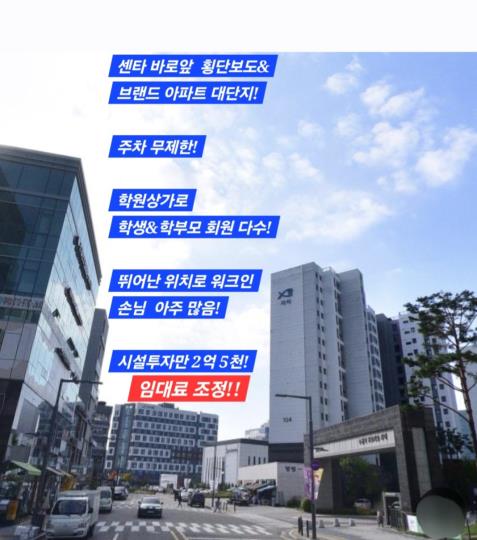 PS.¸ÅÀå ¹æ¹®¹ÌÆÃ ¿øÇϽøé ☘️´ã´ç ¿¡ÀÌÀüÆ®(¿ìÃøÇÏ´Ü) ¹Ì¸®¿¬¶ôÁÖ½Ã¸é ¹æ¹®»ó´ã ¿¹¾àÇØµå¸®°í µ¿ÇàÇϰڽÀ´Ï´Ù. (¿ÞÂÊ»ó´Ü ±¤°í¹øÈ£ 6ÀÚ¸®) *ÀÓ´ëÀκÐÀÌ ÁÁÀ¸½ÅºÐÀÌ¶ó¼ ¿ù ÀÓ´ë·á Á¶Á¤°¡´É¼ºÀÌ ¸¹½À´Ï´Ù. ºü¸¥ ¿¬¶ôÁֽôºв² Á»´õ Å« ÇýÅõ帮°íÀÚ ºÎʵå·Á³ù½À´Ï´Ù." ¡á ÇÙ½É ÅõÀÚ Æ÷ÀÎÆ® 1. ÁøÀÔ À庮 ¾ø´Â ÃÊÆ¯±Þ °¡¼ººñ Àμö Á¶°Ç - ±Ç¸®±Ý 3,000¸¸ ¿ø : 2022³â 5¿ù¿¡ ¿ÀÇÂ, ½Ã¼³ºñ 2¾ï5õ!! - ½Ã¼³ »óŰ¡ ¸Å¿ì ¿ì¼öÇÔ¿¡µµ ºÒ±¸Çϰí, ºü¸¥ Á¤¸®¸¦ À§ÇØ ¹Ù´Ú ±Ç¸®±Ý ¼öÁØÀ¸·Î ³»³õ¾Ò½À´Ï´Ù. Ãʱâ ÅõÀÚ ºñ¿ëÀ» ÃÖ¼ÒÈÇÏ¿© ¸®½ºÅ© ¾øÀÌ ½ÃÀÛÇÒ ¼ö ÀÖ½À´Ï´Ù. 2. ÁÖÂ÷ ¹«Á¦ÇÑ»ó°¡ - ȸ¿ø µî·ÏÀÇ ÇÙ½É °áÁ¤ ¿äÀÎÀÎ ÁÖÂ÷ ¹®Á¦°¡ ÀüÇô ¾ø½À´Ï´Ù. - Â÷·® ¹æ¹® ȸ¿ø À¯Ä¡¿¡ ¾ÐµµÀûÀÎ °æÀï·ÂÀ» º¸À¯Çϰí ÀÖ½À´Ï´Ù. 3. źźÇÑ ¹èÈÄ ¼ö¿ä (Çпø »ó°¡&¹Ù·Î¾Õ ºê·£µå ¾ÆÆÄÆ® ´ë´ÜÁö ¹ÐÁý) - Ⱦ´Üº¸µµ ¹Ù·Î¾ÕÀ̰í, Å«´ë·Îº¯¿¡ ÀÖ¾î¼ ½ÃÀμºÀÌ ¸Å¿ìÁÁ¾Æ ¹®ÀÇ¿À½Ã´Â ¼Õ´Ô ¸¹½À´Ï´Ù. - Çпø Á᫐ »ó°¡ °Ç¹°¿¡ ÀÔÁ¡ÇØ ÀÖ¾î, Àڳฦ µîÇÏ¿ø ½ÃŰ´Â Çкθð´Ôµé°ú Çлý ¼ö¿ä°¡ ²ÙÁØÇÕ´Ï´Ù. - À§Ä¡°¡ ÁÁ¾Æ º°µµ ¸¶ÄÉÆÃ ¾øÀ̵µ ¿öÅ©ÀÎ(Walk-in) »ó´ãÀÌ ¾ÆÁÖ ¸¹½À´Ï´Ù. - ¼¾Å¸ ¹Ù·Î¾Õ¿¡ ´ë´ÜÁö ¹ÐÁýÁö¿ªÀ¸·Î °íÁ¤ ´Ü°ñ ȸ¿ø ¸¹½À´Ï´Ù. 4. 100% ¿ÀÅä ¿î¿µ ½Ã½ºÅÛ ±¸Ãà - ÇöÀç Á¡ÁÖ´ÔÀº Àη ¹× ÀÔÃâ±Ý °ü¸®¸¸ Çϸç Ç®¿ÀÅä·Î ¿î¿µ ÁßÀÔ´Ï´Ù. - ÅõÀâÀ» ¿øÇϽðųª, Á÷Á¢ ¼ö¾÷/»ó´ãÀ» º´ÇàÇÏ¿© ¼ø¼öÀÍÀ» ±Ø´ëÈÇÏ½Ç ºÐ ¸ðµÎ¿¡°Ô ÀûÇÕÇÕ´Ï´Ù. ¡á ¸Å¹° °³¿ä - ¸Å¹°¸í: ¼±°ñÇÁ¾ØÇʶóÅ×½º (»óÈ£¸¸ °ñÇÁ,°ñÇÁ½Ã¼³Àº ¾øÀ½) - À§Ä¡: °æ±âµµ ¼ö¿ø½Ã ÆÈ´Þ±¸ ÆÈ´Þ·Î 63 (´ë·Îº¯ Çпø »ó°¡) - ±Ô¸ð: Àü¿ë¸éÀû ¾à 168.74§³ - ÀÓ´ëÁ¶°Ç: º¸ 6,000¸¸ ¿ø / ¿ùÀÓ´ë·á 390¸¸ ¿ø (ºÎ°¡¼¼ º°µµ) - ±Ç¸®±Ý: 3,000¸¸ ¿ø (Èñ¸Á°¡) *¹Ù·Î ¹ÌÆÃÈÄ °è¾à½Ã ³×°íÇØµå¸³´Ï´Ù. ¡á¼öÀÍ ¹× ¿î¿µ ÇöȲ - ¸ÅÃâ/ÁöÃ⠺κÐÀº ¿î¿µ»óȲ¿¡ µû¶ó ´Ù¸£¹Ç·Î, ¹æ¹®¹ÌÆÃ½Ã »ó¼¼ °ø°³ÇϰڽÀ´Ï´Ù. - Á¡ÁÖ ÄÚ¸àÆ®: ÇöÀç ¿ÏÀü ¿ÀÅä ¿î¿µ ÁßÀ̹ǷÎ, Á÷Á¢ ¿î¿µ ½Ã ÀΰǺñ Àý°¨À» ÅëÇØ Áï°¢ÀûÀÎ ¼öÀÍ »ó½ÂÀÌ °¡´ÉÇÕ´Ï´Ù. - ȸ¿ø ¼ö: À¯È¿ ȸ¿ø ¾à 100¸í º¸À¯ Áß ¡áÁöÃâ ³»¿ª - ÀΰǺñ: ¾à 800¸¸ ¿ø (°»ç 6¸í ¹× Á÷¿ø Æ÷ÇÔ) - °ü¸®ºñ: 90~100¸¸ ¿ø (¼öµµ, Àü±â, °ø°ú±Ý Æ÷ÇÔ) - ±âŸ Àâºñ: ¾à 18¸¸ ¿ø 💎 ½Ã¼³ ¹× ÀÎÅ׸®¾î * ÃÖÀûÀÇ ·ë ±¸¼º: ÇÁ¶óÀ̺ø ·ë 4°³, Å»ÀǽÇ, Á¢¼ö ⱸ ¿Ïºñ *ÈÀå½Ç: ¿ÜºÎ °ø¿ë ÈÀå½Ç (°ü¸® »óÅ ¾çÈ£) *ƯÀÌ»çÇ×: 2022³â ¿ÀÇÂÀ¸·Î ±â±¸ ¹× ÀÎÅ׸®¾î »óŰ¡ ¸Å¿ì ÈǸ¢ÇÏ¿©, Àμö ÈÄ Ãß°¡ ¼ö¸® ºñ¿ë ¾øÀÌ Áï½Ã ¿µ¾÷ °¡´ÉÇÕ´Ï´Ù. 📢 ¸Åµµ »çÀ¯ ¹× Ãßõ ÇѸ¶µð °³ÀÎÀûÀÎ »çÁ¤À¸·Î ÀÎÇØ, ¾ÖÁ¤À» ½ñÀº ¸ÅÀåÀ» ½Ã¼¼ ´ëºñ ¸Å¿ì Àú·ÅÇÑ ±Ç¸®±Ý¿¡ ¾çµµÇÕ´Ï´Ù. ÇöÀç ¿ÀÅä ¿î¿µÀ¸·Îµµ ¼öÀÍÀÌ ³ª´Â ±¸Á¶ÀÌÁö¸¸, ¿Á¤ ÀÖ´Â ¿øÀå´ÔÀÌ Á÷Á¢ ¿î¿µÇϽŴٸé ÀΰǺñ Àý°¨°ú ȸ¿ø °ü¸® °È¸¦ ÅëÇØ ¼ø¼öÀÍ 2¹è ÀÌ»óµµ ÃæºÐÈ÷ °¡´ÉÇÑ ÀáÀç·Â ³ôÀº ¸ÅÀåÀÔ´Ï´Ù. "ÁÖÂ÷ °ÆÁ¤ ¾ø´Â ÄèÀûÇÑ ½Ã¼³, 3,000¸¸ ¿øÀ¸·Î ³» ¼¾Å¸¸¦ ÀμöÇϽñ⠹ٶø´Ï´Ù." ¡á¸Å¸Å»çÀ¯ - Çö ´ëÇ¥´ÔÀÌ ¹ýÀÎ ¿©·¯»ç¾÷À¸·Î µµÀúÈ÷ ½Å°æ¾µ¼ö ÀÖ´Â »óȲÀÌ ¾Æ´Ï¶ó¼ 2³â¿î¿µ ÀßÇѰ÷À» ¸¹Àº °í¹Î³¡¿¡ ¾çµµÇÕ´Ï´Ù. - ºü¸¥°Å·¡¿¡ ¸ñÀûÀ» µÎ°í ÁøÇàµÇ´Â ¸Å¹°À̶ó ±Ç¸®±Ý¿¡ ´ëÇÑ Çù»óÀÇ ¹®µµ Ȱ¦ ¿·ÁÀÖÀ¸¸ç£¬ - °¢Á¾ ÀÚ·á ¹× ¼öÀÍ£¬ ±Ç¸®±Ý Çù»ó µîÀº ´ã´ç ¿¡ÀÌÀüÆ®¿¡ ¹®ÀÇ Áֽøé Á¶±Ý ´õ ÆíÇÏ°Ô »óÀÇÇÏ½Ç ¼ö ÀÖ½À´Ï´Ù. - ÁÁÀº »ó±Ç¿¡ â¾÷ºñ¿ë ´ëºñ ±×³É ³»¾îÁÖ´Â °¡°ÝÀ¸·Î ÁøÇàµÇ´Â Ư±Þ¸Å¹° ÀÔ´Ï´Ù. - Á÷Á¢ ¼ö¾÷&»ó´ãÀ» ÇϽǼö ÀÖ´Â °»çÃâ½ÅÀ̳ª ¿øÀå´ÔÀÌ ¿À½Ã¸é °í±Þ ÀÎÅ׸®¾î¿¡ ÃÖ»óÀÇ »ó±ÇÀ» ¸ðµÎ °¡Á®°¥¼ö ÀÖ½À´Ï´Ù. - Áö±Ý º¸´Ù ¾ÕÀ¸·Î ¿ì»óÇâ ÇÒ¼ö ÀÖ´Â ÃÖ°íÀÇ »ó±Ç¿¡¼ ¼öÀÍÇü ¸Å¹°À» ã°í °è½Å â¾÷ÀÚ ¸ðµçºÐµé²² Ãßõµå¸³´Ï´Ù. 💎 ¸¹Àº °ü½É°ú ºü¸¥ ¹®ÀÇ ¹Ù¶ø´Ï´Ù.💎 ¡ß º» °è¾à½Ã Áß°³»ç°í´Â º¸»óº¸Áõ ¡ß ¸ÅÃâÀÚ·áÈ®ÀÎ(Ä«µå¸ÅÃâ & ºÎ°¡¼¼ ½Å°íÀÚ·á) ¡ß ÀÓ´ëÂ÷ °è¾à½Ã ¼Ò¼Ó °øÀÎÁß°³»ç Á÷ÀÎ ¡ß °ÇÃ๰ÀÌ»óÀ¯¹«/µî±âºÎµîº» È®ÀÎ ¡ß Á¤·ü ¼ö¼ö·á |